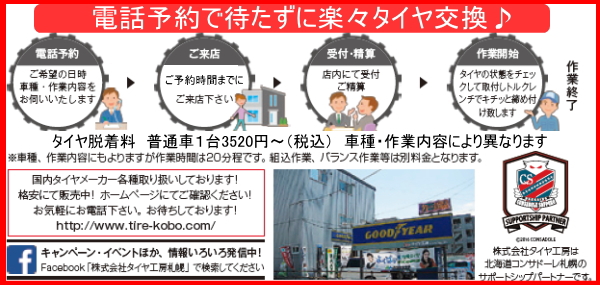 電話予約で待たずに楽々タイヤ交♪ご予約お待ちしております!