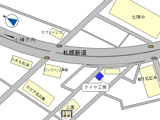 札樽道 小樽方面へ向かい「北33西8」の信号から副道に入り、左折。